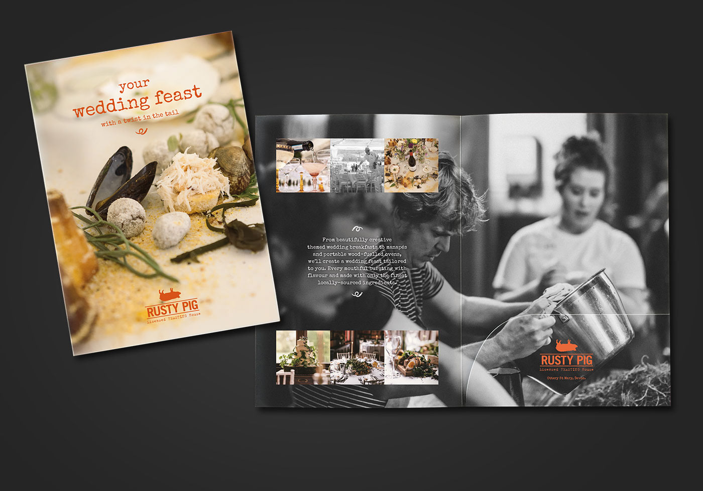 Rusty Pig owner Robin Rea has created a wonderfully unique and quirky eatery and he’s bursting with off the wall ideas. The restaurant has done away with a traditional menu, instead they cook whatever is fresh and seasonal on the day. They’ve also created an eclectic setting to dine in, filled with interesting decor. We have put these unique characteristics at the heart of their brand communications. The design of the website, folders, stationery, advertising and even the launch of their sparkling wine, all aim to capture this quirky nature.